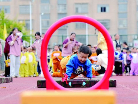 11月11日,一场以“萌娃遇卡通 运动趣无穷”为主题的亲子运动会在上高县第二幼儿园举行,孩子们与家长一起共同完成“快乐向前冲”(图①)“负重前行”(图②)“你追我赶”“障碍接力”等游戏项目,让孩子与孩子、孩子与老师、孩子与家长充分融入“乐”与“动”中,享受快乐,展现自我。