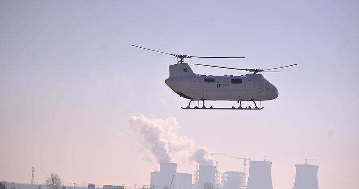 2025年10月30日,哈尔滨,铂影T1400无人直升机平稳升空,完成悬停、航线飞行、精准降落等一系列动作。视觉中国 图