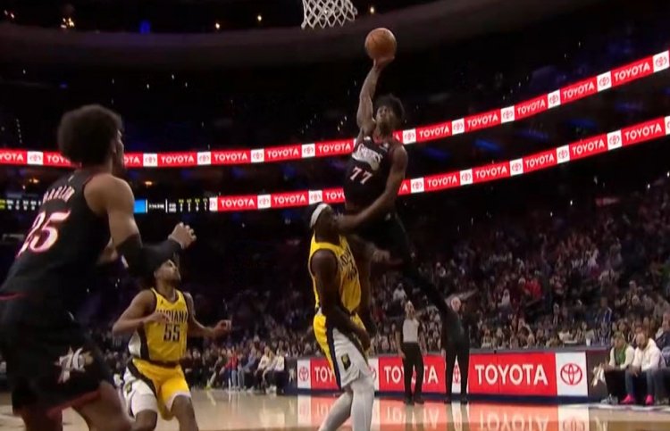 差点世纪之扣!埃奇库姆一步垫起试图单臂隔扣西卡被犯规!