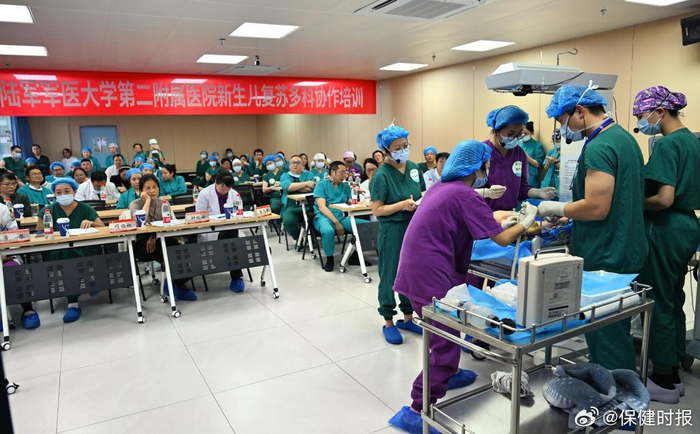 “37周新生儿,肌张力差、喘息样呼吸、羊水粪染……”12月29日,随着一声清脆的监护仪提示音,在陆军军医大学新桥医院麻醉科学习室,一场惊心动魄的新生儿复苏演练正在紧张进行。来自该院妇产科、儿科、麻醉科手术室的医护团队正与死神展开激烈较量——这也是新桥医院连续第三年举办的新生儿抢救多科协作专项培训现场。