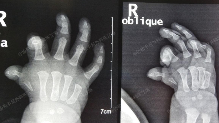 这是一个来自浙江的宝宝,他的右手拇指以前是IIIC型拇指发育不良,不会动。妈妈担心影响孩子的手部功能和心理健康,因此希望能够手术进行改善。在宝宝1岁多的时候,我们采用SMRT半掌骨移植重建的方法把漂浮拇指保了下来。如今宝宝右手拇指不仅长大了,而且功能也有了改善,抓握东西、拧“螺丝”都很不错。