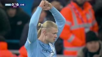 第38分钟,曼城断球后快速反击,哈兰德在弧顶起脚射门,球击中防守球员产生变线,约恩森将球扑出。