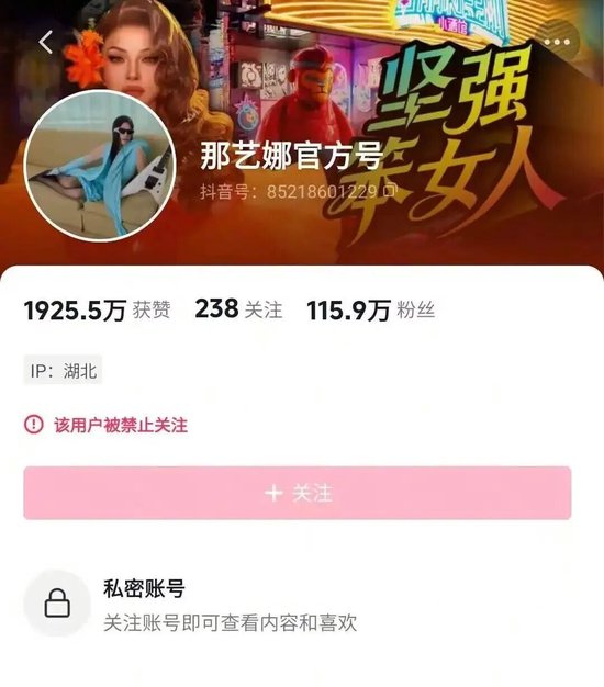 那艺娜多个账号被禁止关注,视频已清空!